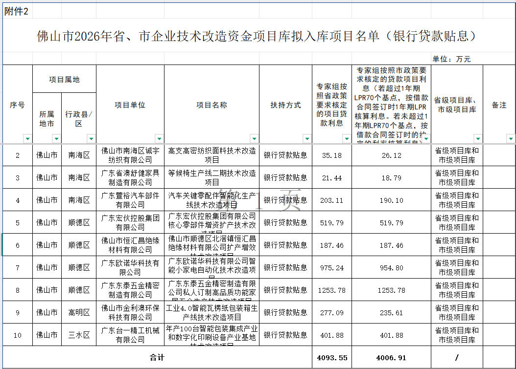 入选2026年省、市企业技术改造资金项目库项目名单的公示